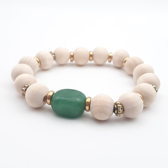 Jade Green Focal Bead Natural Wooden Beaded Stretch Bracelet