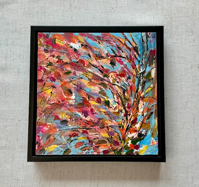 Falling Leaves Panel Inlaid on Driftwood Base – Blues, Plum & Greens     Â
