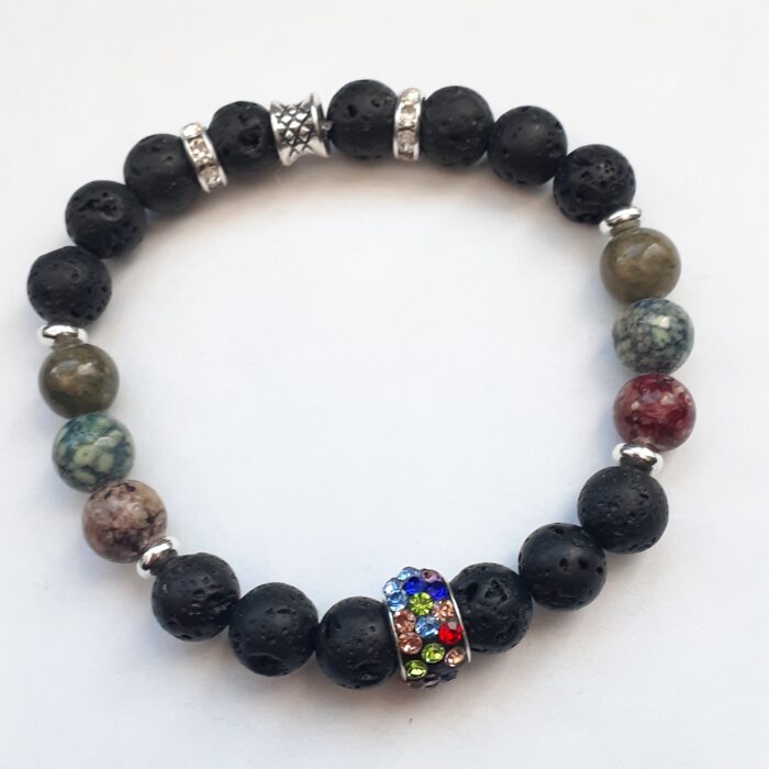 Lava Bead Stretch Bracelet with Bling Bling Colourful Rhinestone Focal Bead