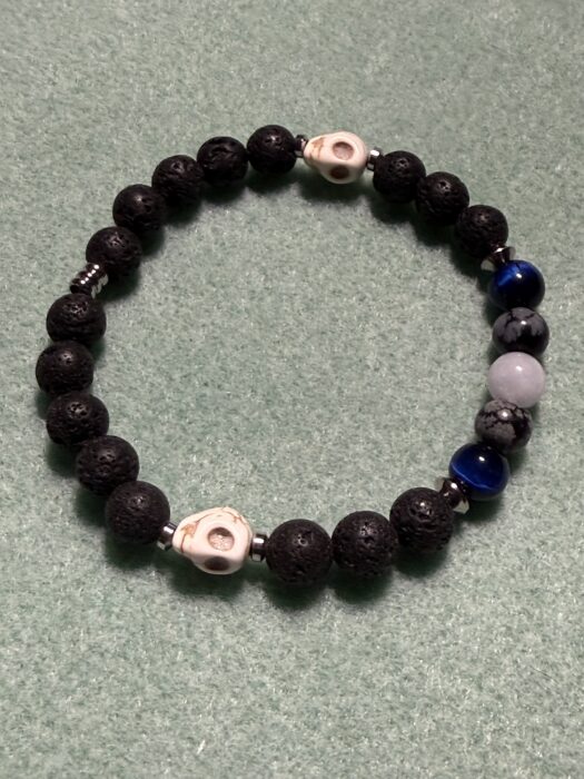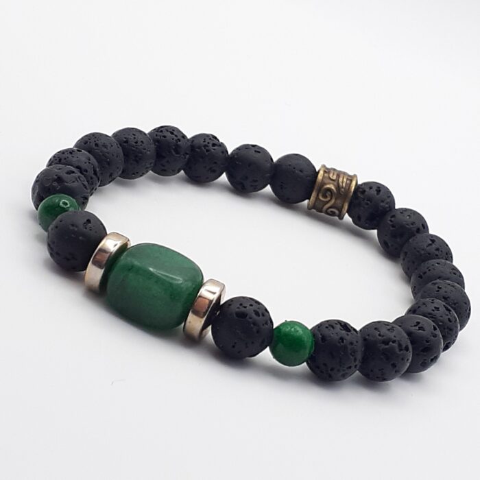 Lava Stone, Stainless Steel, and Glass Bead Bracelet