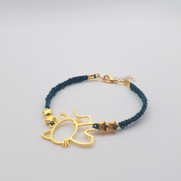 Kitty Cat Hemp Macrame Thin Bracelet in Emerald Green with Gold Colour Clasp