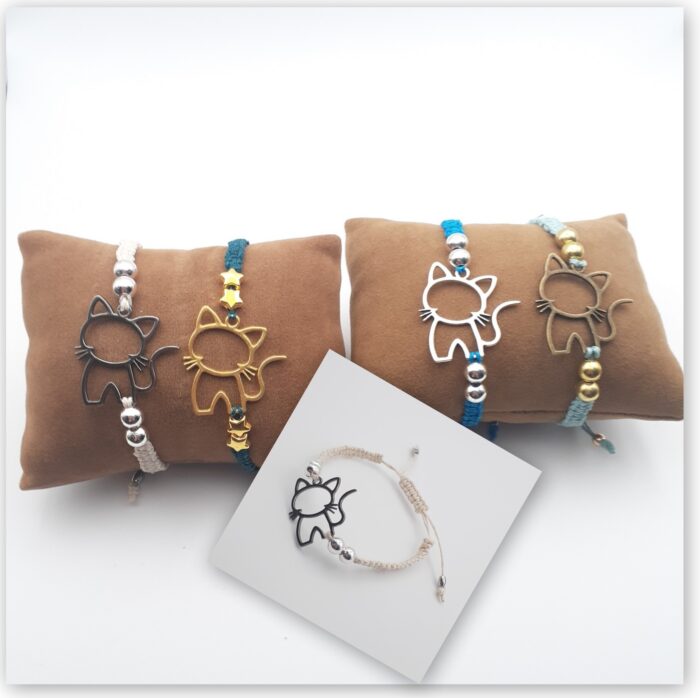 Kitty Cat Thin White Macrame Hemp Adjustable Bracelet