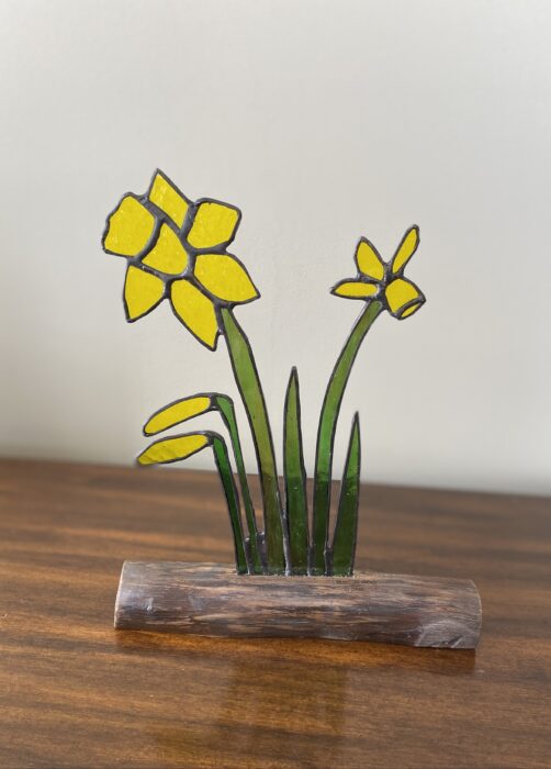 Stained Glass Daffodils Inlaid on Driftwood Base Â