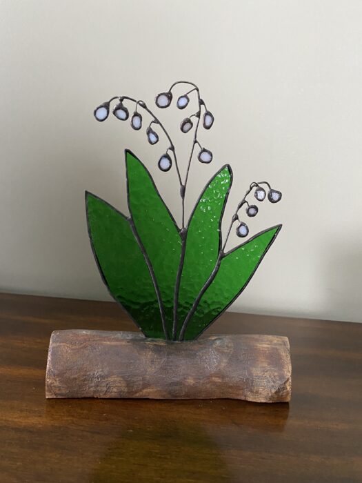 Stained Glass Lily of the Valley on Inlaid Driftwood Base   Â