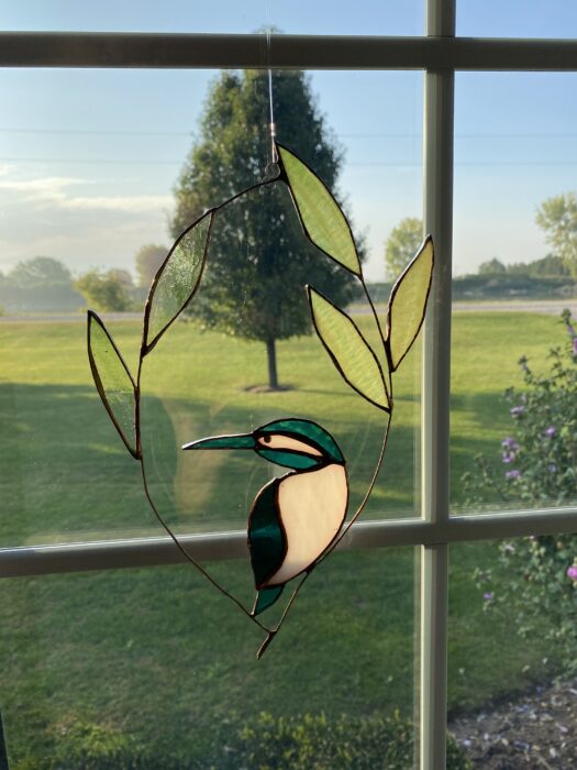 Stained Glass Bird Perching on Branches Hanging Panel Artwork    Â