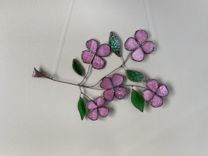 Stained Glass Flowering Dogwood Branch Flower Blossom Hanging Panel Artwork   Â
