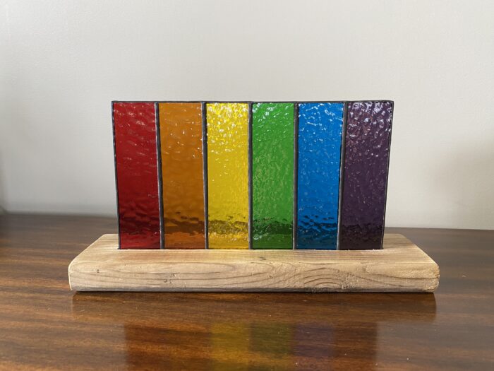 Stained Glass Rainbow Pride Flag Panel Inlaid on Wood Base          Â
