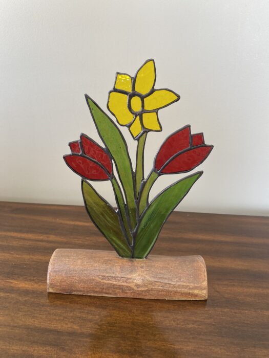 Stained Glass Tulip & Daffodil Spring Bouquets on Driftwood Base – Red Â