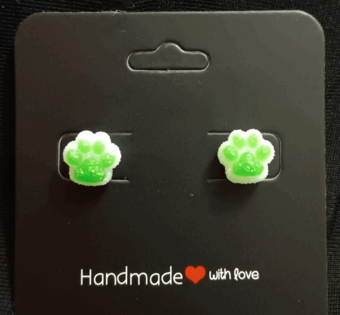 Paws Earrings (Green & White)