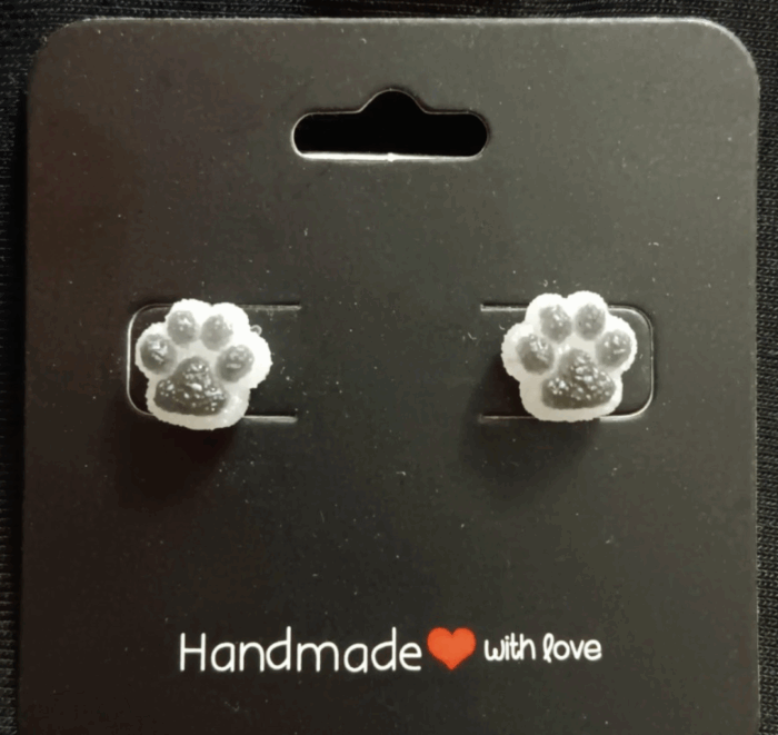 Paws Earrings (Grey & White)