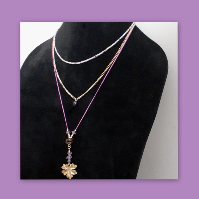Minimalist style 3 necklace set with fushia silk cord necklace with amethyst and chain necklace and dainty miyuki seed bead necklace