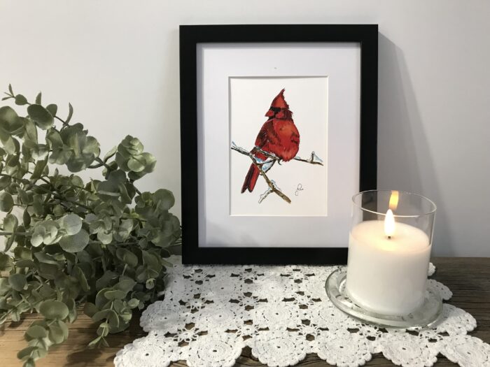 Snowman With Birdhouse & Cardinal