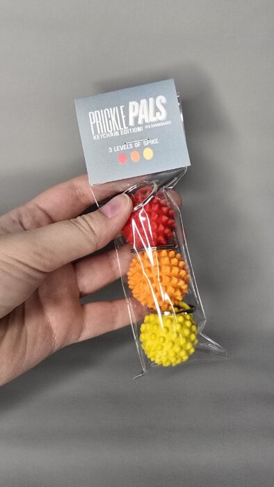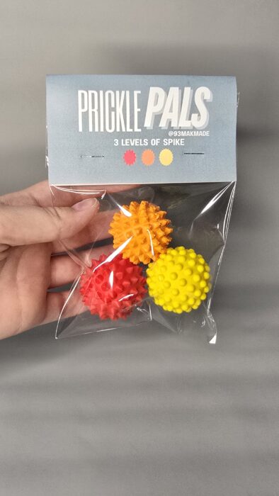 Together we invented Prickle Pals — quirky little sensory tools with all kinds of prickles to help soothe, focus, and fidget.