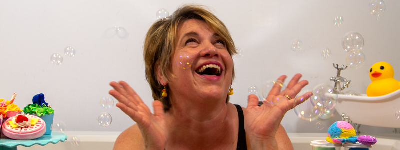 Bubble Bake Shop is a mother/daughter, owned and operated business based in LaSalle, Ontario. Our “Self-Care Bakery” grew out of a love of crafting, baking, and engineering intricate gingerbread houses together over the holidays. Mom and daughter create colourful, fun, delicious, smelling bath bombs, solid bubble bath, soaps, lip balm and scrubs all based on a bakery theme. Customers often comment on how our products (bath bomb cupcakes, fortune cookies, ice cream, bubble bath, etc.) look good enough to eat! Bubble Bake Shop’s products are all handmade, using cosmetic grade, plant based ingredients that are gentle on your skin, and will not stain your skin or tub. We believe that a little whimsy and nostalgia brings joy to young and old alike.